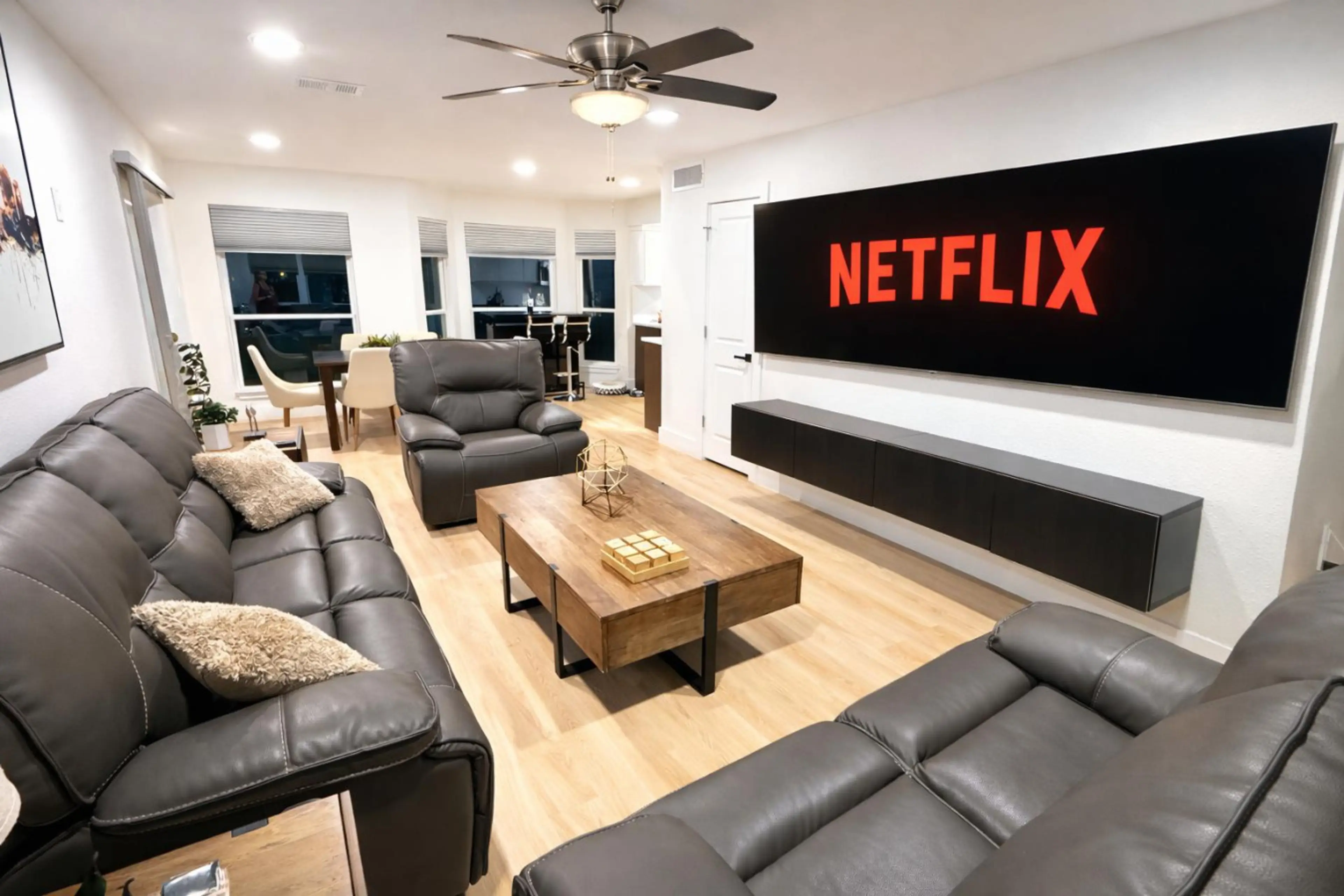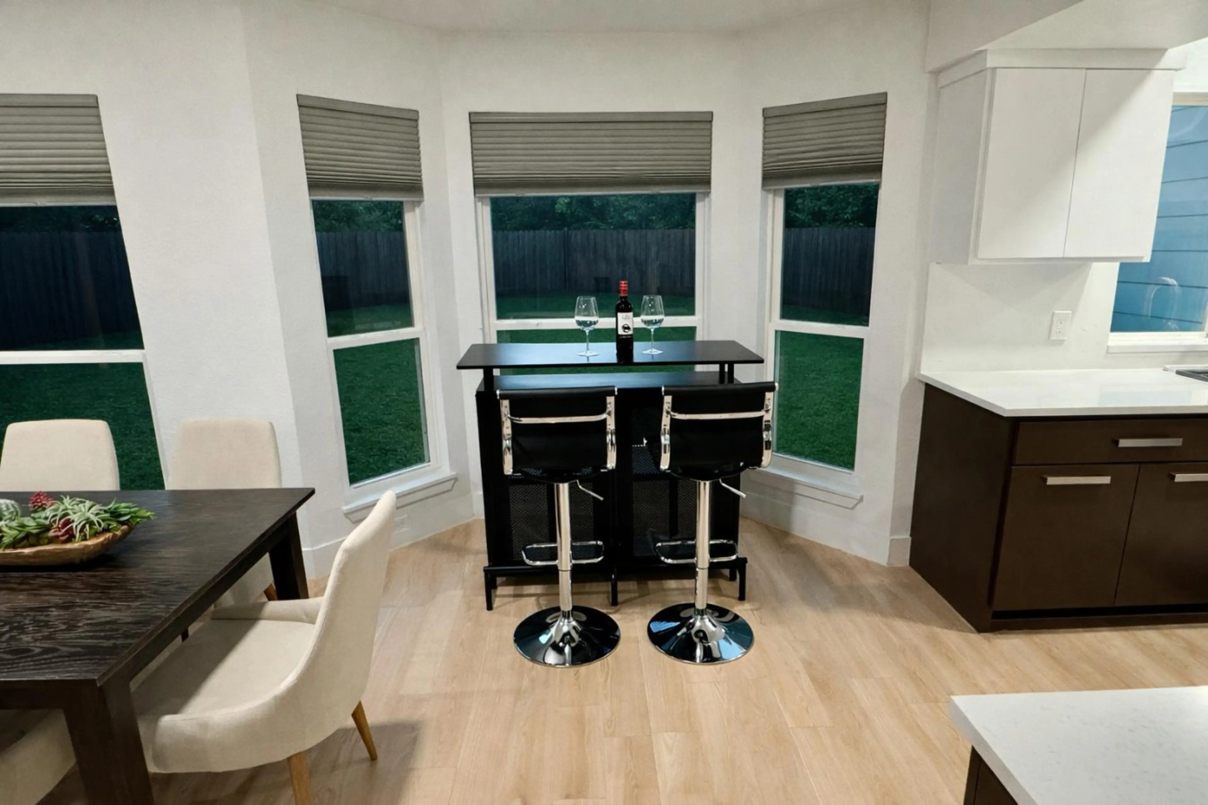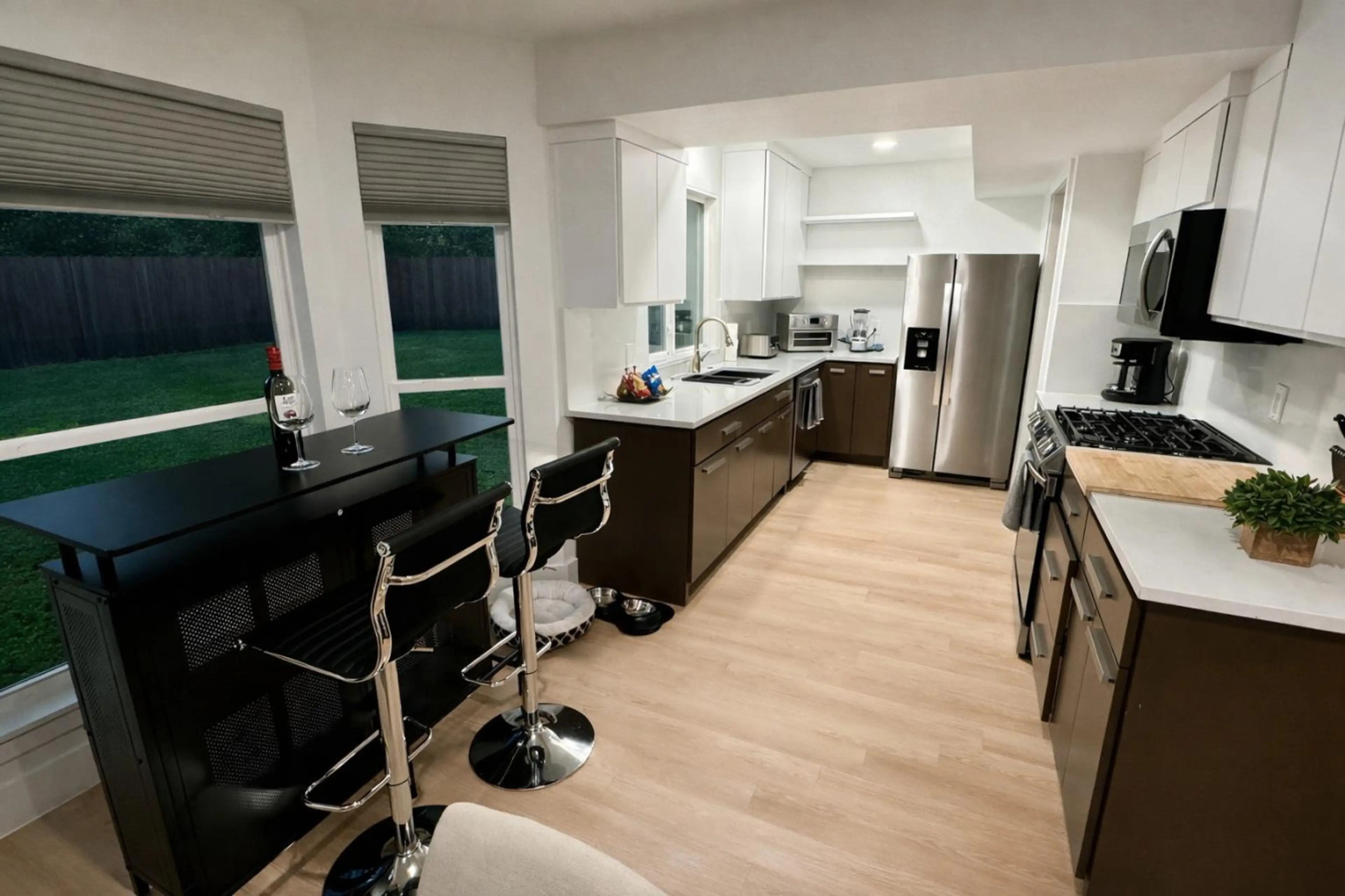 The property worked well for my family and our dog, with the fenced yard helping. The location is close to shopping and restaurants. The property is clean and updated, with two master beds/baths upstairs with comfortable beds.